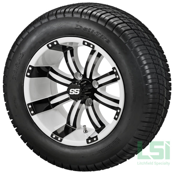 12x7 White & Black Casino Wheel 3+4 Offset 4 on 4 Bolt Pattern SS Center Cap included 215/50-12 4ply Deli Tire May require lift WARNING: Cancer & Reproductive Harm -...