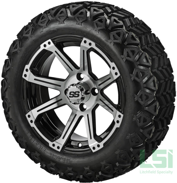 14x7 Black & Machined Warlock Wheel 3+4 Offset 4 on 4 Bolt Pattern SS Center Cap included 22x10.00-14 Trail Fox Tire WARNING: Cancer & Reproductive Harm - www.P65Warnings.ca.gov
