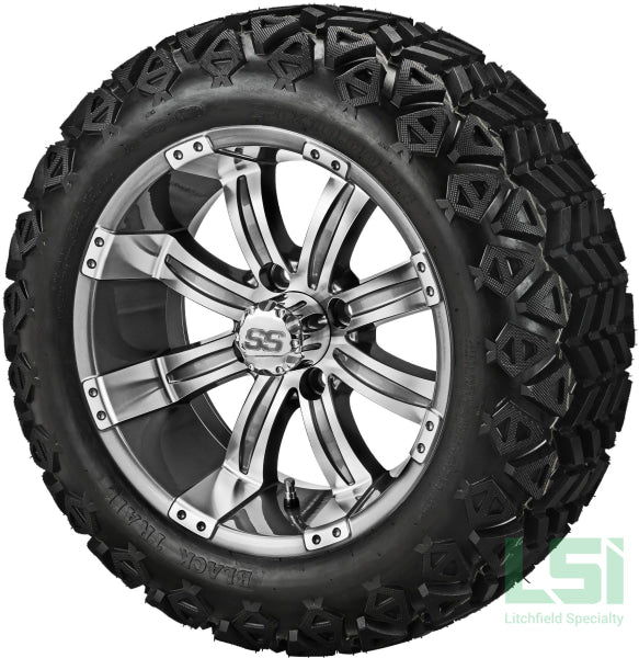 14x7 Mirror Chaos Wheel 3+4 Offset 4 on 4 Bolt Pattern SS Center Cap included 23x10.00-14 Black Trail Tire WARNING: Cancer & Reproductive Harm - www.P65Warnings.ca.gov